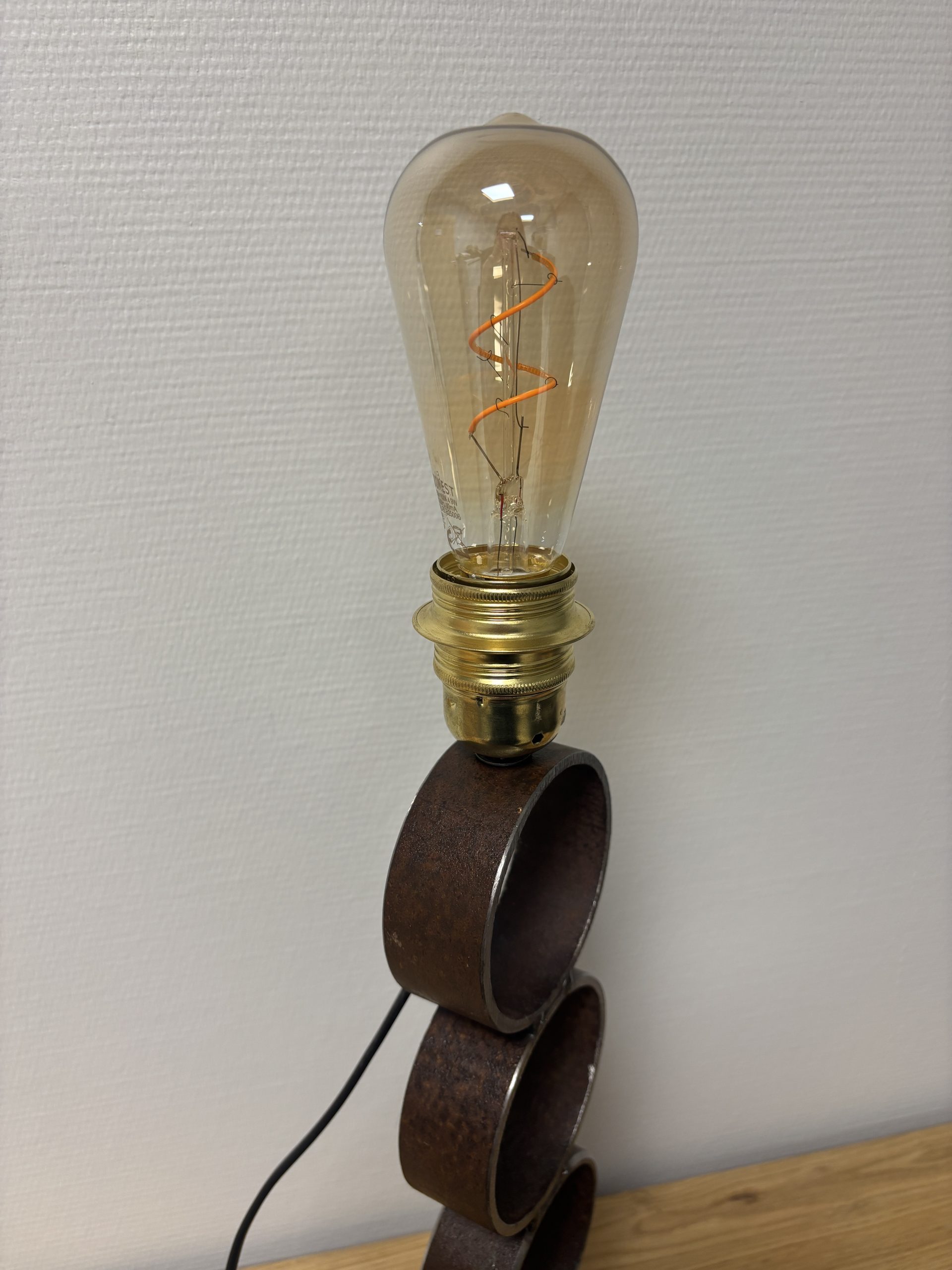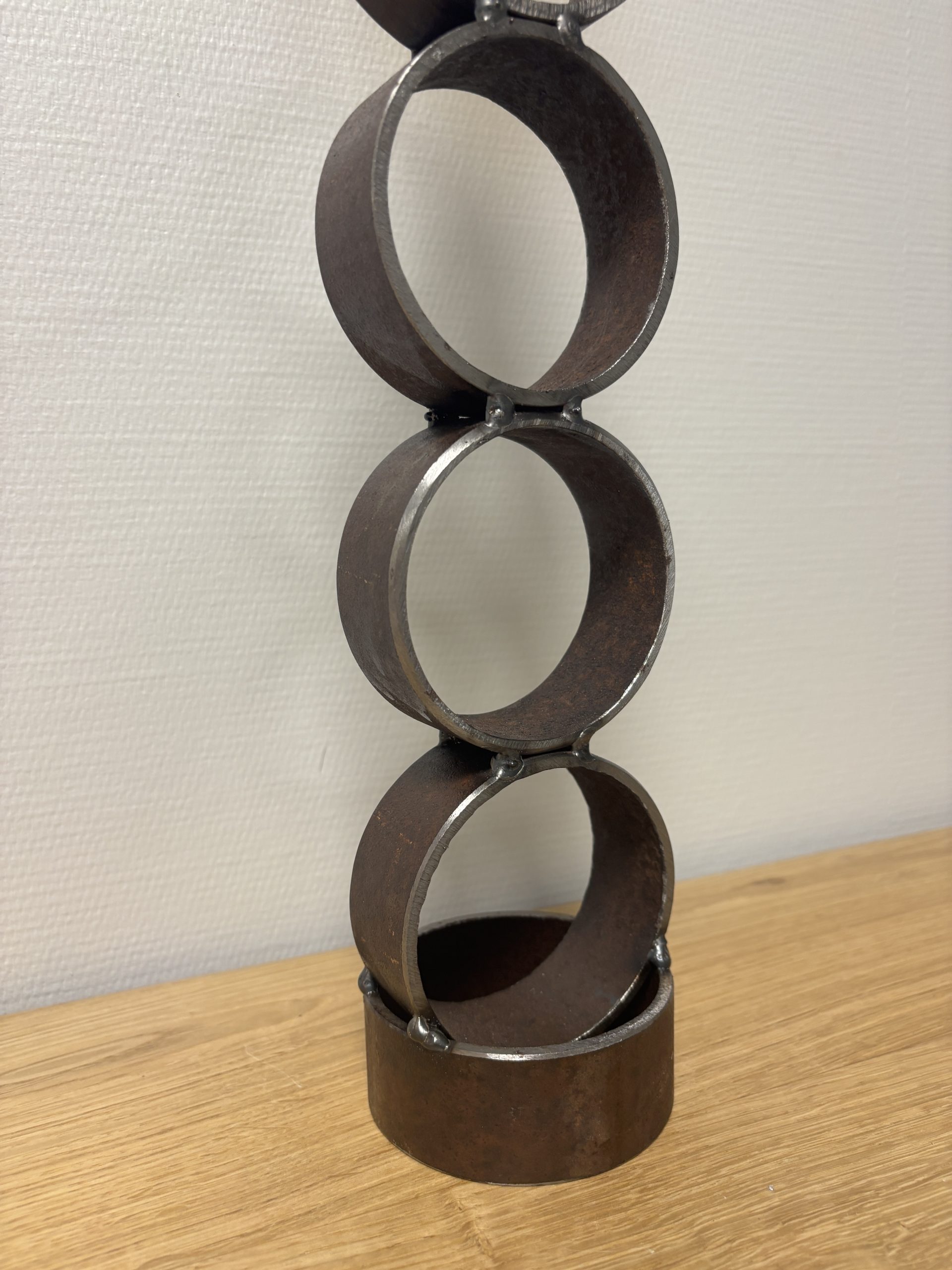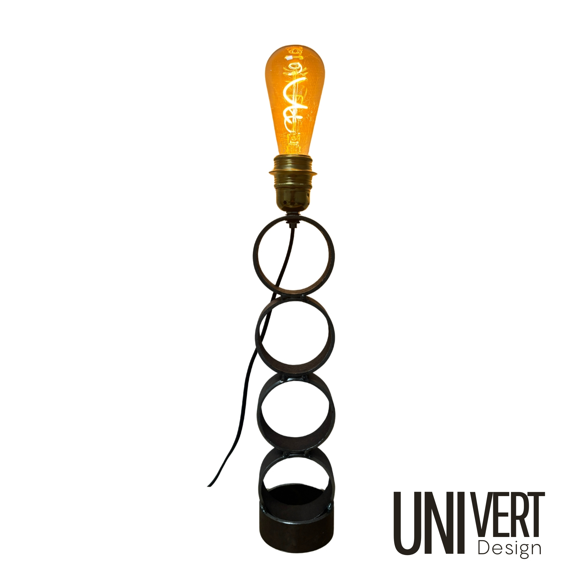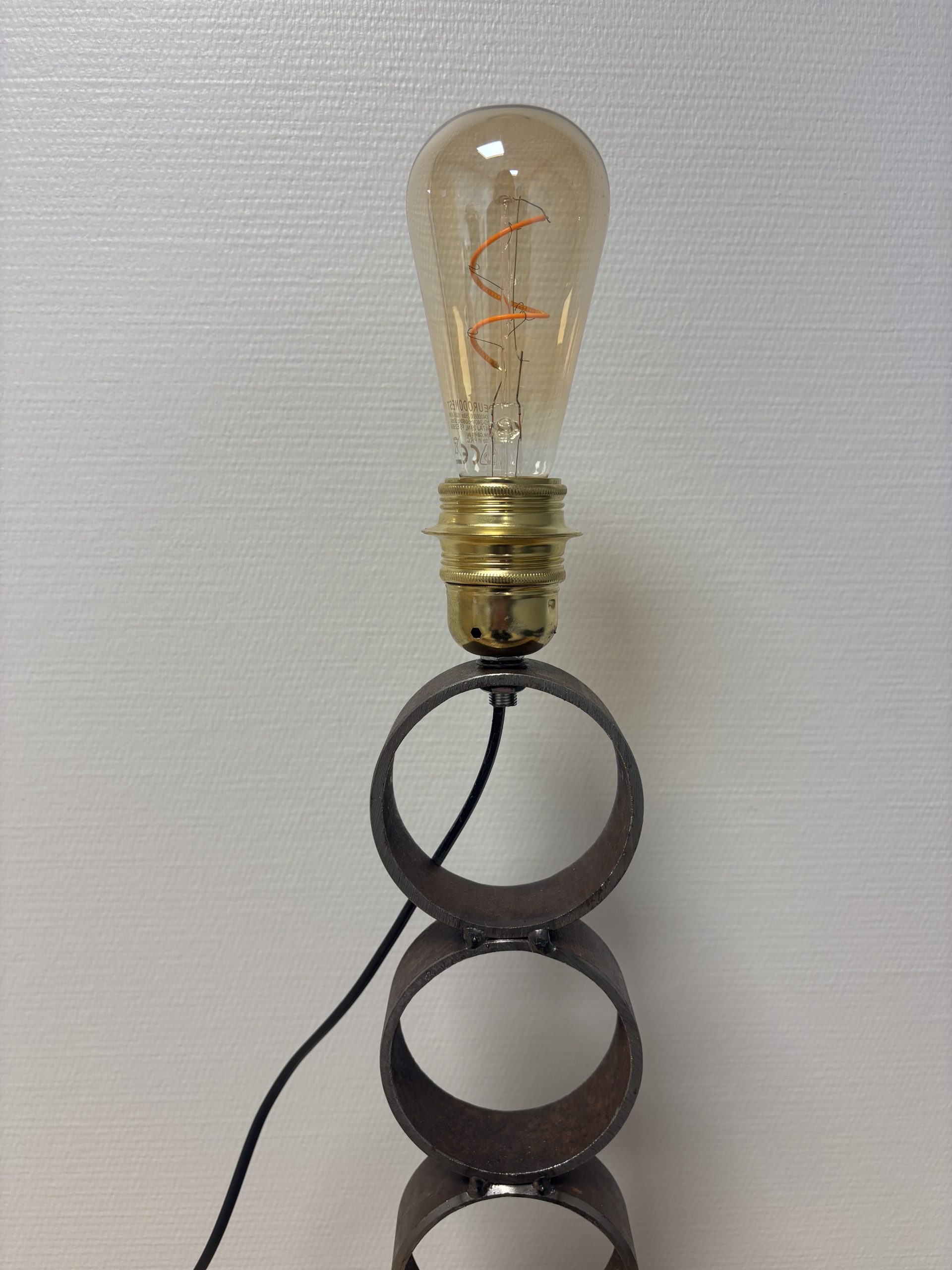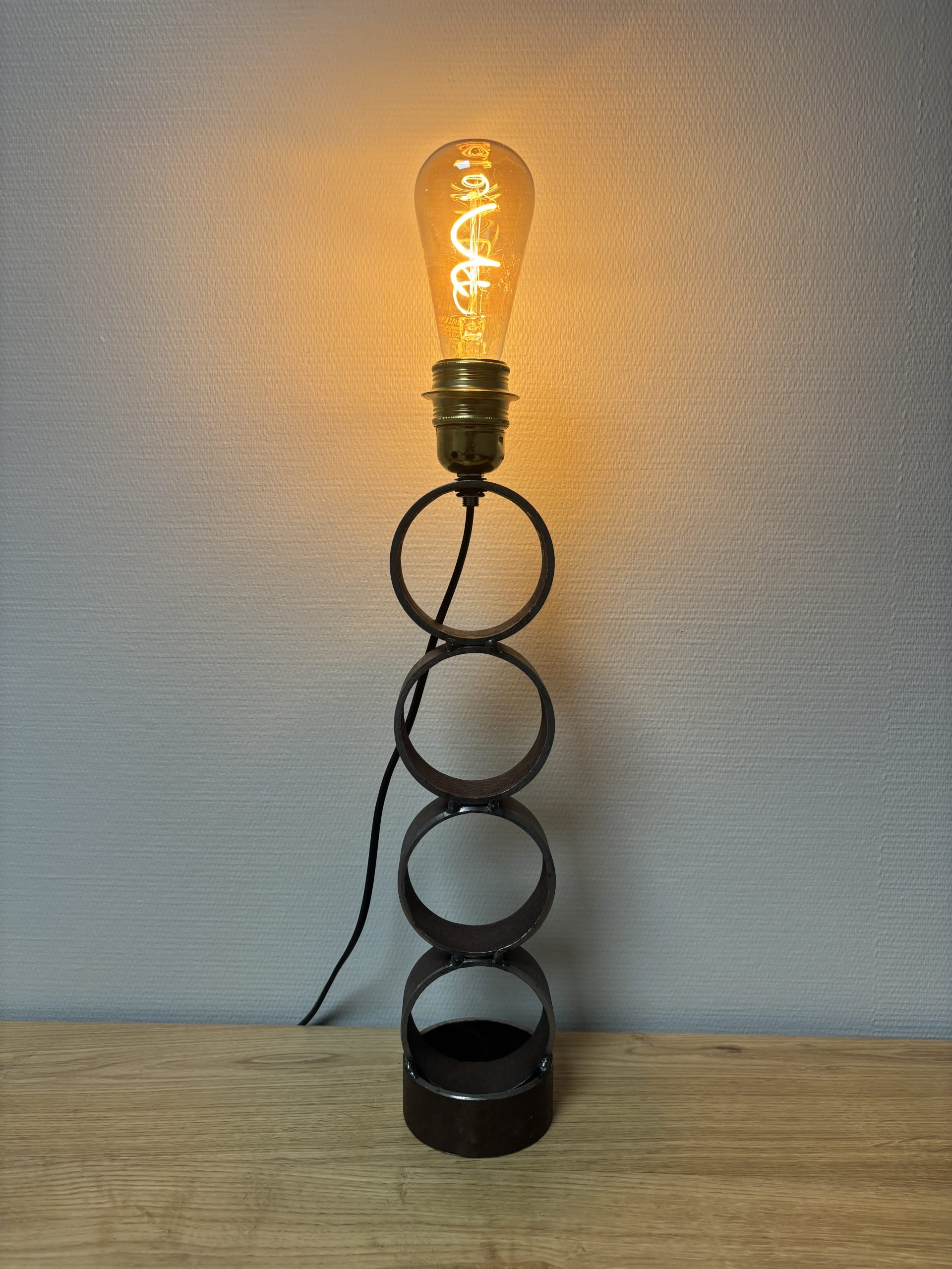 Chaque anneau a été travaillé et soudé avec soin pour offrir une structure stable et harmonieuse. Cette lampe incarne pleinement les valeurs d’économie circulaire, d’inclusion et de création responsable.